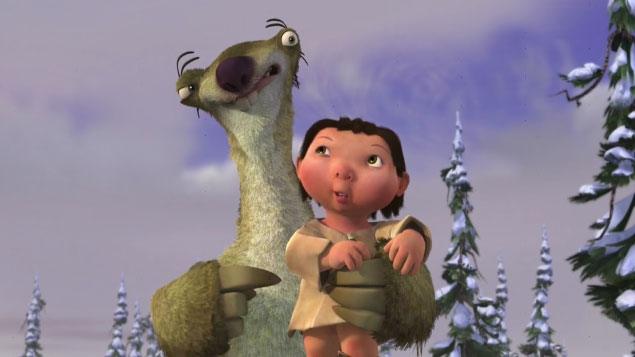 No, tak se na naše hrdiny podívejte! Obličeje mají vyloženě ledové. A s tím přesunem je docela honička, zvlášť když zvířecí tým - mamut, tygr a lenochod - najdou lidské mládě, moc roztomilého človíčka, a usmyslí si, že prcka vrátí rodičům.